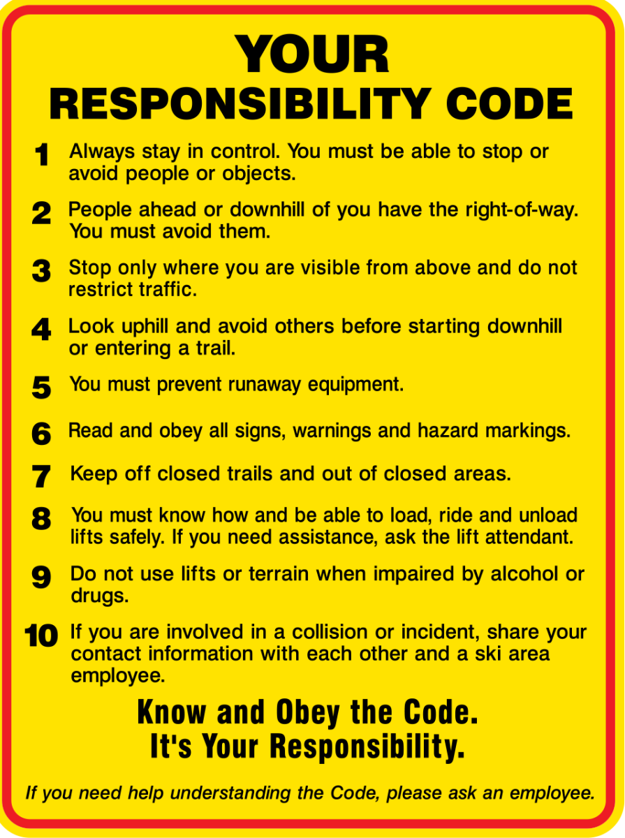 - ALL SKIERS MUST ABIDE BY THE SKIER RESPONSIBILITY CODE.